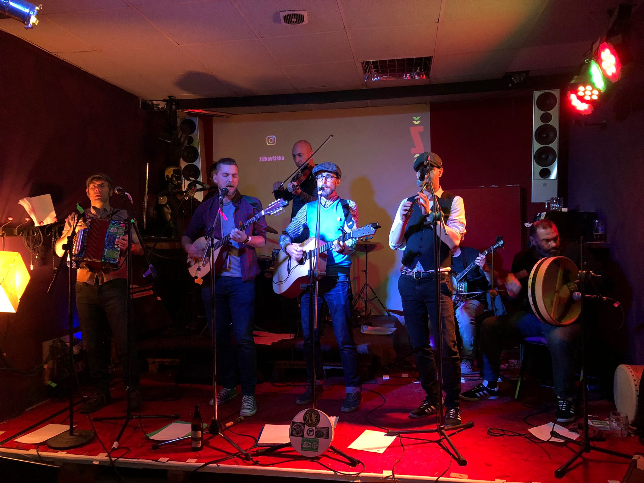 An amateur pub band playing mostly traditional Irish folk, drinking beer and having fun